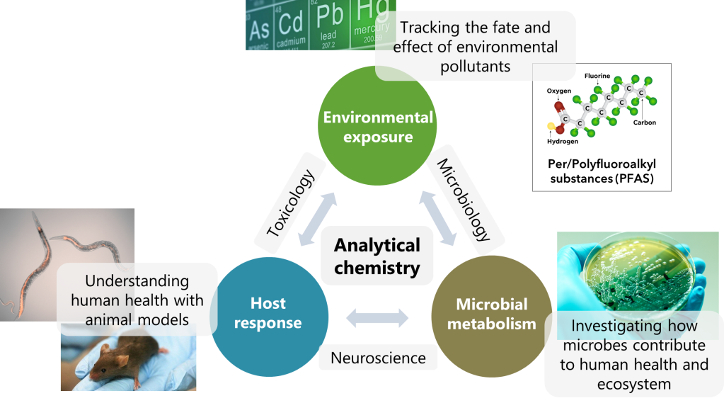 We develop MALDI-MS methods coupled with trapped ion mobility (TIMS) for analysis of per- and polyfluoroalkyl substances (PFAS). We perform MALDI-TIMS-MS imaging to map the spatial distribution of PFAS and link to biological structures and functions. We also measure toxicity response of C. elegans and bacteria after PFAS exposure. Dr. Qiu is is affiliated with the Center for PFAS Research at MSU.